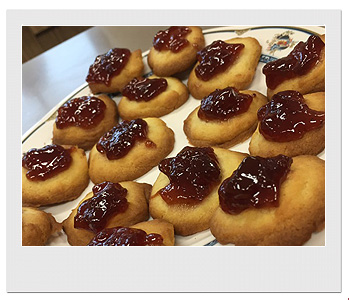 オーブンで15分焼いた後、一度クッキーをオーブンから出して凹みを作っていちごジャムを乗せ、さらに3分焼かなければならないところが大変でした。