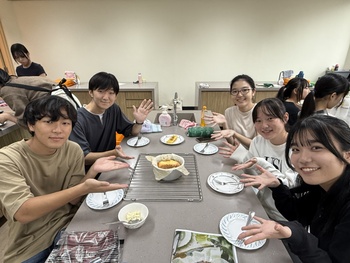 クッキング部はグループごとにテーマを決め、食文化について調べ学習をし、調理実習を行っています。