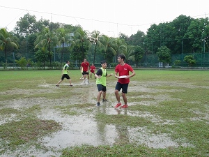 そして雨が止み、グラウンドへ移動し、45分間の試合を行いました。本校からは3年生と2年生(30期生と31期生)の男女混合チームが出場しました。グラウンドの状況が悪く走り辛い中、またスローやキャッチをするときに雨水で手が滑ったりする中でも、全選手諦めることなくプレイすることができました。試合には残念ながら敗退したものの、これまで小グループで基礎的な練習しかできなかった状況から、一気に規制が緩和し、公式の試合ができる喜びを感じることもでき、どの生徒もとても満足そうでした。30期生にとっては、これが引退試合となる試合で、最初で最後の公式試合となりましたが、とてもいい経験ができたと感じたようです。
