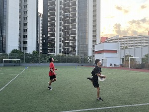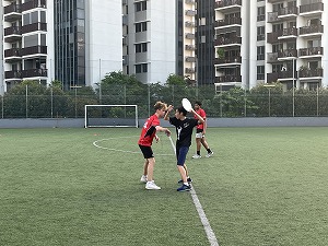 そして最終戦の第6戦。相手は、前回は快勝したCISでしたが、今までで最も苦しい戦いになりました。風が強かったこともあり、両チームなかなか点数も決まらずの攻防が続きました。アルティメットのルールでは、決勝点が11点(11点先取したチームが勝利)で、これまでほとんどの試合で決勝点勝ちしていた早稲渋チームにとって、この最終戦は真の実力を発揮しないと勝利を掴めない試合となりました。十分に対策を立ててきた相手に対し、試合中に攻略法を見出していいプレイが出せたこともあり、最終的に勝利の女神は早稲渋に微笑んでくれました。