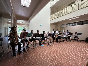 「フレンド・ライク・ミー」「明日への扉」「情熱大陸」の3曲を演奏しました。会場には保護者や生徒たちが集まり、音楽に包まれた温かい時間を共有しました。