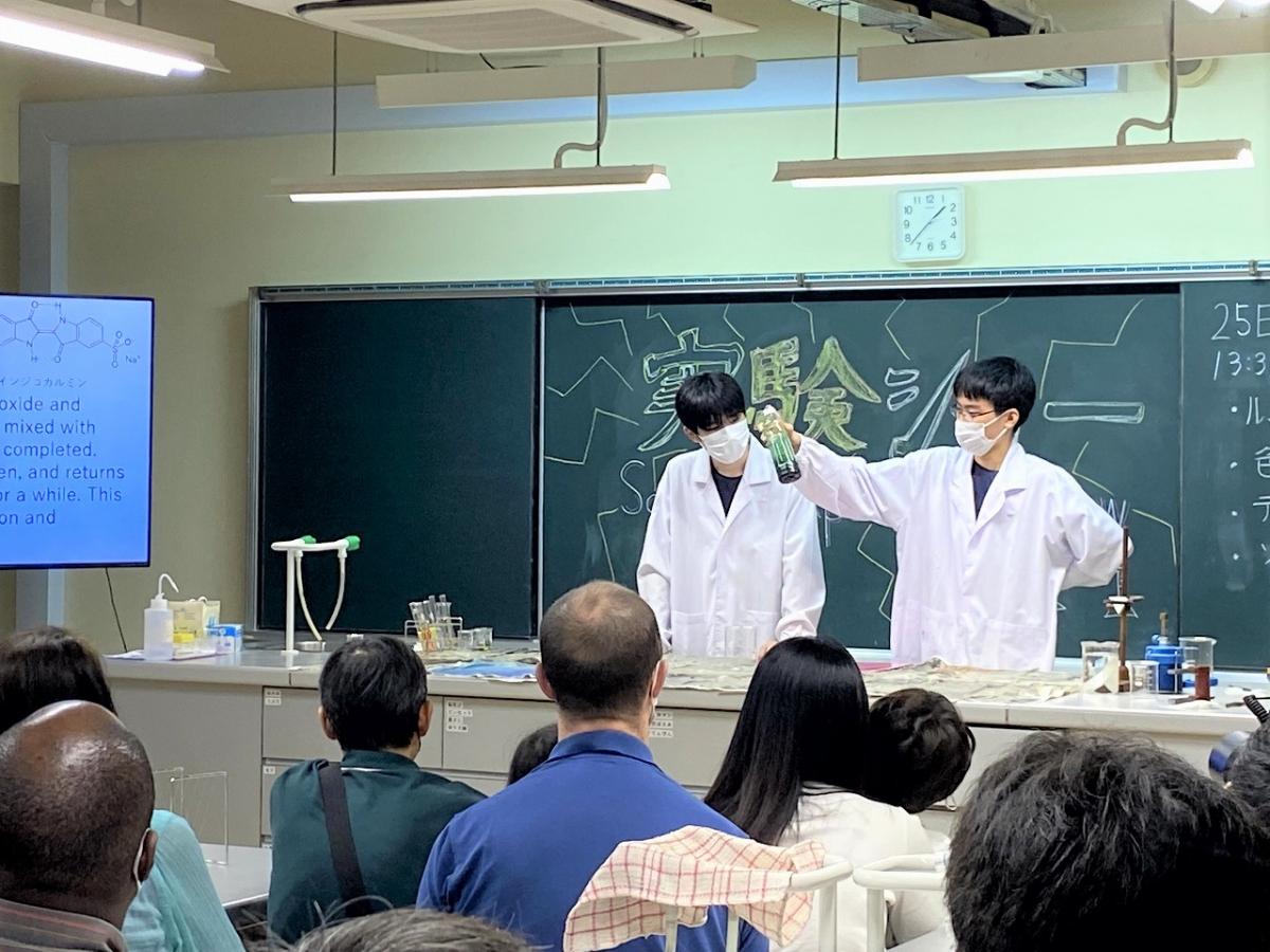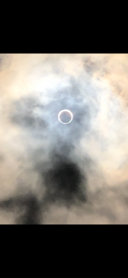 生徒も職員も皆、祈る気持ちで空を見上げていると、金環日食開始時刻13:22になった時、奇跡的に雲の切れ間から太陽が顔を覗かせました。裸眼では直視できないので、順番に日食グラスを渡しあいながら肉眼で観察をし、それと並行して天体望遠鏡での撮影も成功させました。