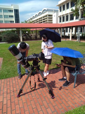 観測時間は3時間弱観測していましたが、生徒たちはひと時も観測場所から離れず、常に撮影モニターをチェックし、太陽の公転運動に合わせて望遠鏡の微調整を続けていました。