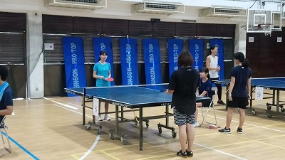 本年度は本校卓球部から3年生6名、2年生4名と1年生1名の合計11名が参加しました。この大会では競技が「経験者」や「高校生・一般」などの部門別に分かれており、本校部員は「高校生・一般」の部門に参加しました。